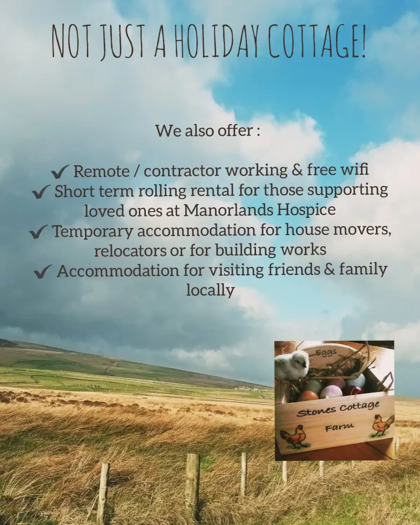 Hello! If you are looking for a place where you have panoramic views all round, have peace and quiet and space, yet be really well connected via main transport links, and internet, need somewhere that accommodates infants, toddlers, teens with lots of things to do, then we are definitely for you! We are a farm and holiday cottage and have great facilities for all ages of children including infants, couples, home workers and contractors, and for all weathers. The cottage sleeps up to 5 plus infant, there’s a large exclusive gaming barn, hot tub, access to animals, free parking, and a 7.5kW EV charging pod point here. Even better, we’re in easy reach of Haworth, (home of the Brontes), Hebden Bridge (location of many TV series including Riot Women, Happy Valley etc), Saltaire, Skipton, Halifax (Piece Hall), Bradford (City of Culture 2025), Leeds (including First Direct Arena), and Manchester.